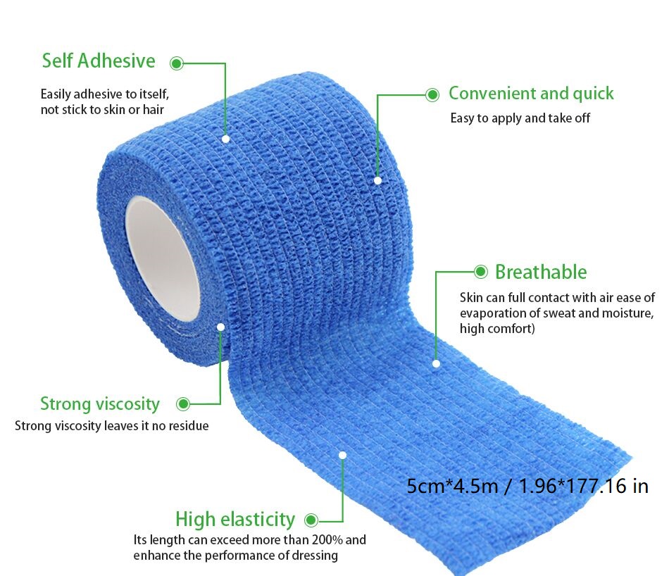 Ikke -vævet sammenhængende bandage er lavet af 90% ikke -vævet + 10% spandex, latex lim & latex gratis lim To slags lim er tilgængelige; Ikke-vævet bandage latex er vidt brugt til kæledyr, neglekunst, tatoveringer osv. Faktisk er ikke-vævet selvklæbende bandage latex mere omkostningseffektiv end vævet bandage med latexfri lim, så mere end 95 % købere vælger ikke-vævet selvklæbende bandage med latex.